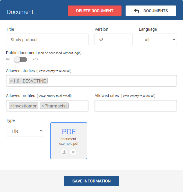 You can subsequently refer to these documents in your study: within a form, when signing an eConsent, etc.