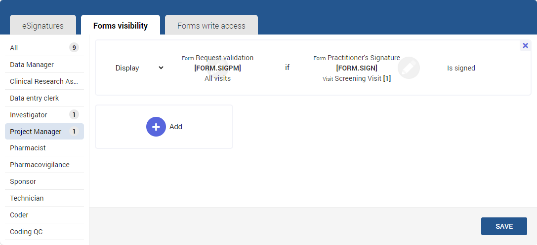 Define the conditions under which a form can be read or written: signature of previous form, CRF field value, etc.